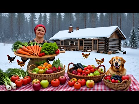 ثلوج كثيفة على القرية لقد حضرنا الفطير باللحم الطعام التقليدي المناسب لبرد الشتاء
